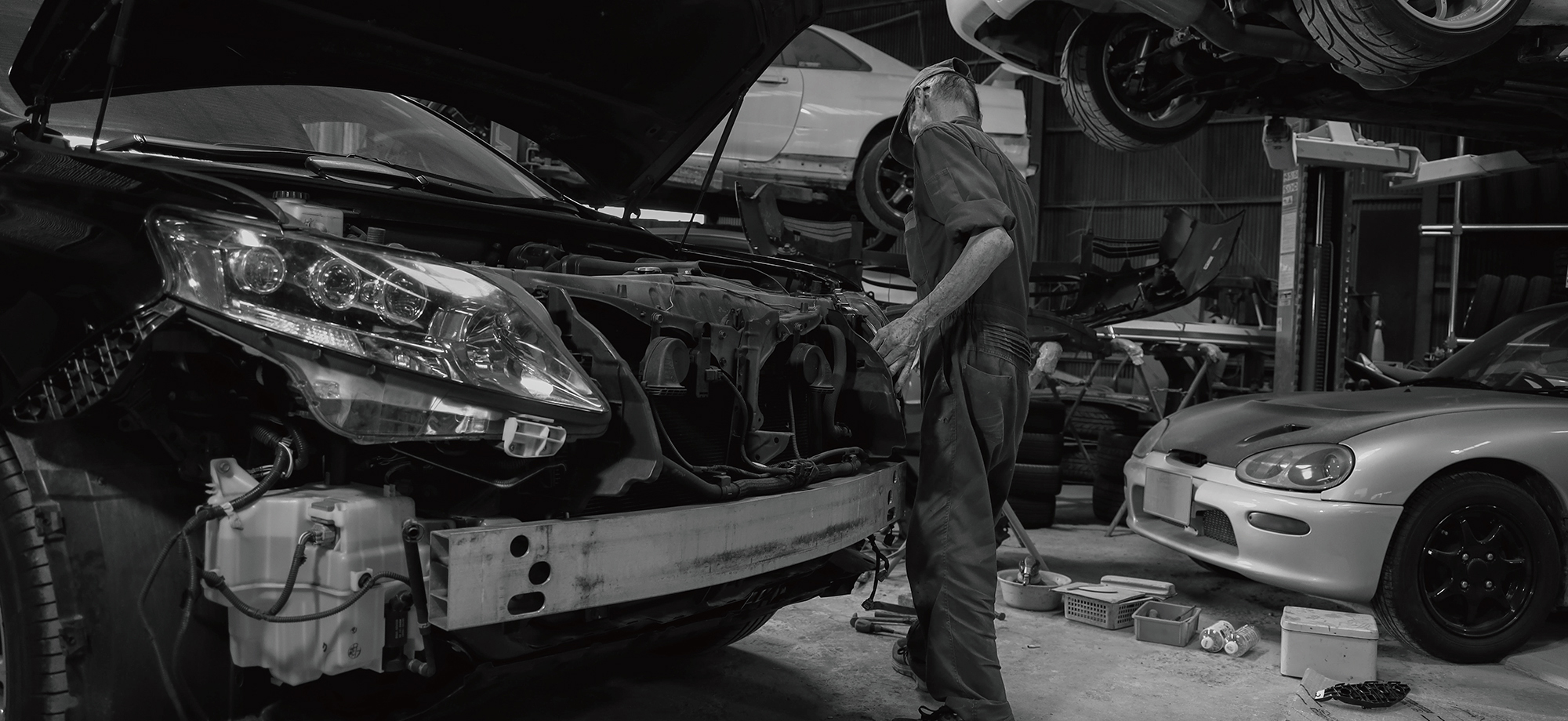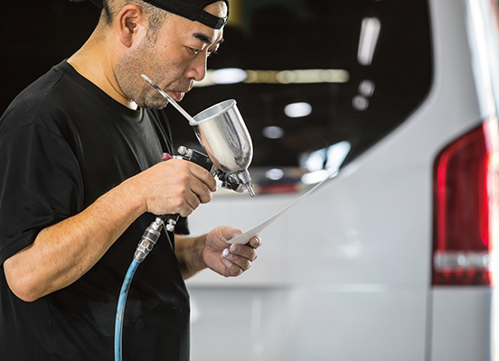 自動車のみに関わらず、プラスチック整形及び形成、特殊な塗装、出張作業及び出張塗装、フレーム修正、保険事故処理、不動車及び事故車両の引き取りなど等、限りをつけずにお引き受けいたします。
